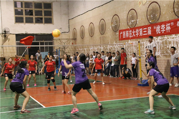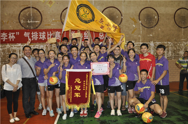 经过激烈的两小时,在一次次的尖叫和加油声中,比赛结束了!电子工程学院的男子组技高一筹,赢得了此次比赛,成为‘’桃李杯‘’气排球学生男子组总决赛的冠军;而女子组,我院女队员们也奋起直追,夺下了学生女子组季军!在阵阵欢呼声中,广西师大第三界“桃李杯”气排球比赛正式落下帷幕