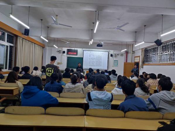 11月25日晚上,电子工程学院党委在育才校区理科楼103教室组织学习贯彻党的十九届六中全会精神专题党课——《坚定文化自信 汇聚磅礴伟力》,师生党员代表和2021级本科生入党积极分子60多人参加了党课。