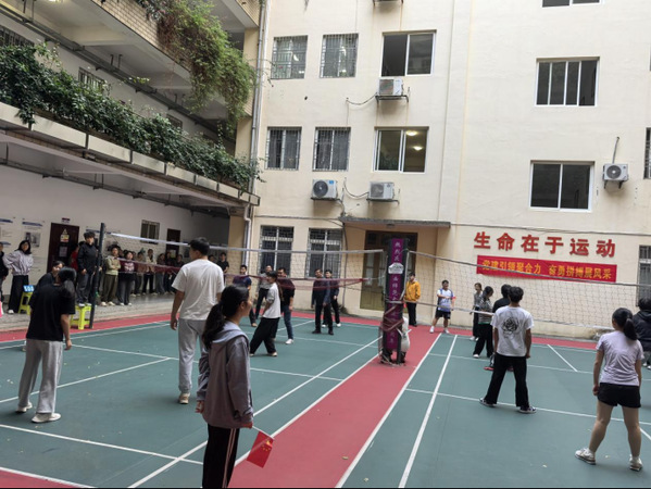 活动现场,师生党员通过抽签分为4组,在两个场地同步展开比拼。发球、接球、扣杀、拦网等动作连贯流畅,场上选手默契配合、奋勇争先,场下观众呐喊助威、氛围热烈。师生党员并肩作战、以球会友,在奔跑跳跃中展现昂扬姿态,在协作配合中拉近心灵距离。