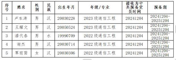 在征求党小组和党员、群众意见的基础上,经支部委员会审查,拟将卢本涛等5名同志转为中共正式党员。根据发展党员工作有关要求,现将其有关情况公示如下:
