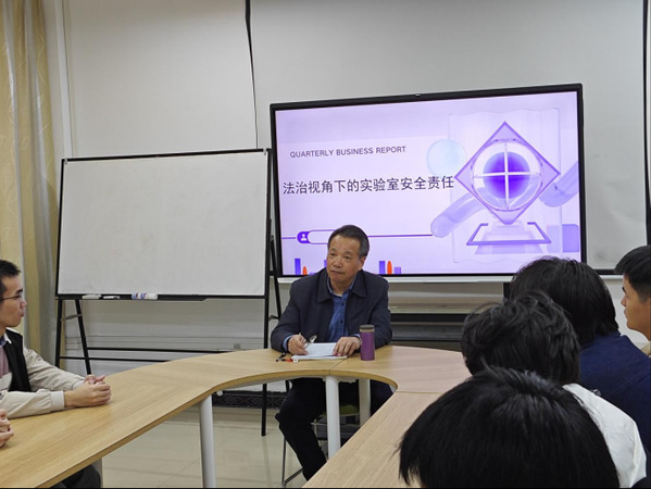 为提高研究生实验室管理员安全防范意识和监督管理能力,11月28日下午,学院在电子楼414讨论室组织“法治视角下的实验室安全责任”专题研讨,学校关工委委员、学院关工副主任、原电子工程学院党委主要负责人俸继锋老师做专题分享。