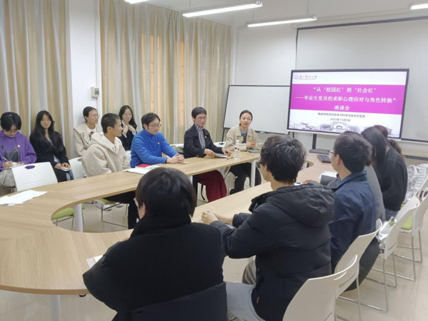 座谈会上,陈老师摒弃传统宣讲模式,采用沉浸式提问引导的方式,层层递进启发学生党员深入思考。围绕“作为学生党员在求职中的不同”这一核心问题,抛砖引玉,引导学生结合自身经历畅谈感悟。现场学生积极回应,纷纷提炼出“责任担当”“能力过硬”“团结协作”“榜样引领”等关键词,深刻认知到党员身份在求职过程中所承载的责任与使命。