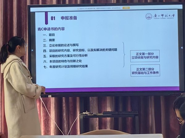 活动伊始,学院科研工作主要负责人着重强调了国基申报对教师个人科研成长及学院学科发展的重要意义。他结合往年申报案例,深入剖析了申报工作的核心重点与常见误区,鼓励教师们立足自身研究专长,精准找准课题创新点,扎实推进申报筹备工作。