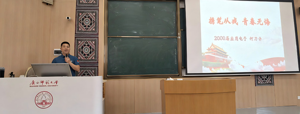 宣讲现场,拥有18年军旅生涯的何乃台院友,结合自身从军经历,围绕“携笔从戎 青春无悔”主题,深情分享了从大学生蜕变成为军人的成长之路。他用鲜活的军营故事、真切的成长感悟,讲述了部队生活的磨砺与收获,阐释了军人的责任与担当,勉励在场学子将青春理想融入国防事业,在军营中锤炼过硬本领、实现人生价值。